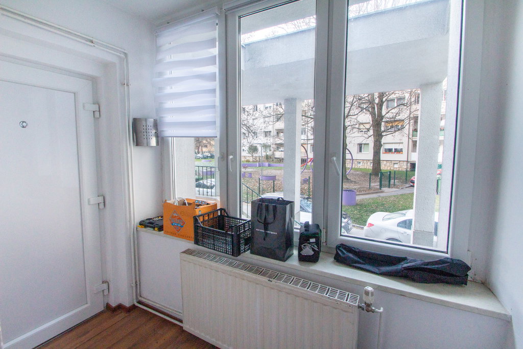 V kopalnici je bojler, ogrevanje je z radiatorji (toplarna).