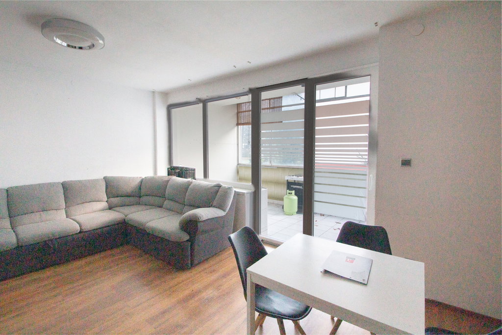 - dnevna soba s kuhinjo, jedilnico in izhodom na balkon