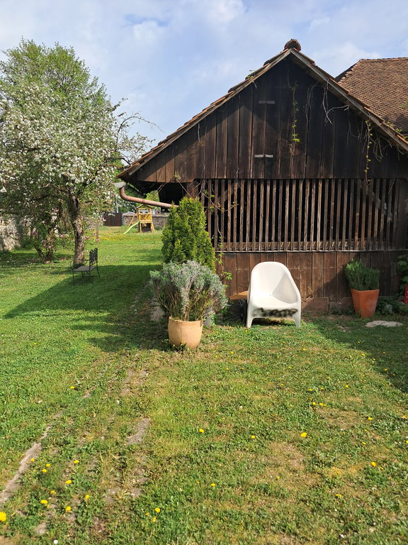 Stanovanju pripada shramba v pomožnem prostoru ob stanovanjski stavbi in del vrta.