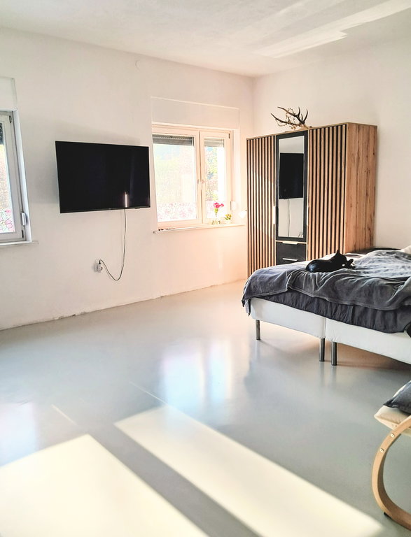 Stanovanje je svetlo, funkcionalno ter s svojo zasnovo daje občutek večjega prostora, ponuja pa tudi razgled na okoliške hribe. Vgrajena so dvoslojna pvc okna.